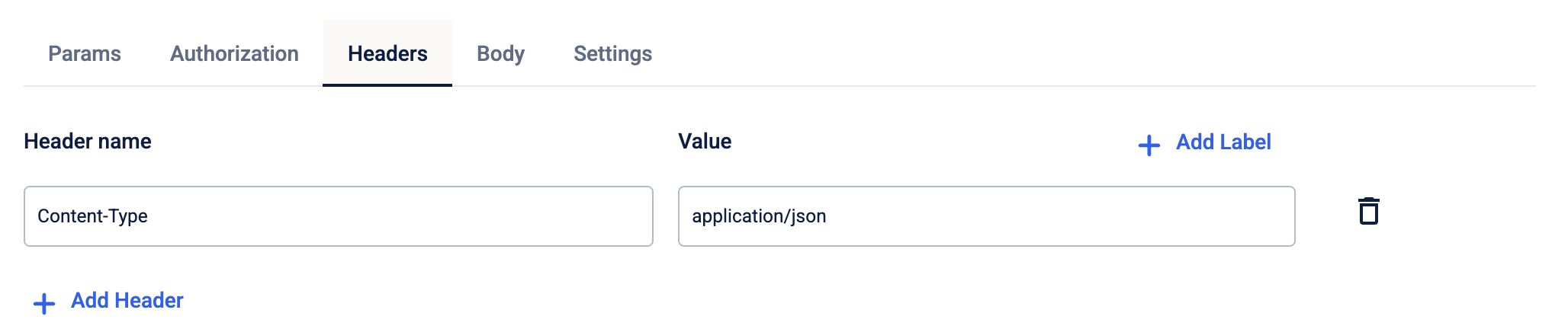 On the Headers tab, in the Header name and Value boxes, enter the headers and values. You can add up to 10 headers. You can add a label, such as "Organisation ID", as a variable value.