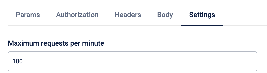 On the Settings tab, enter the rate limit (requests per minute). The default rate limit value is 1000 RPM.
