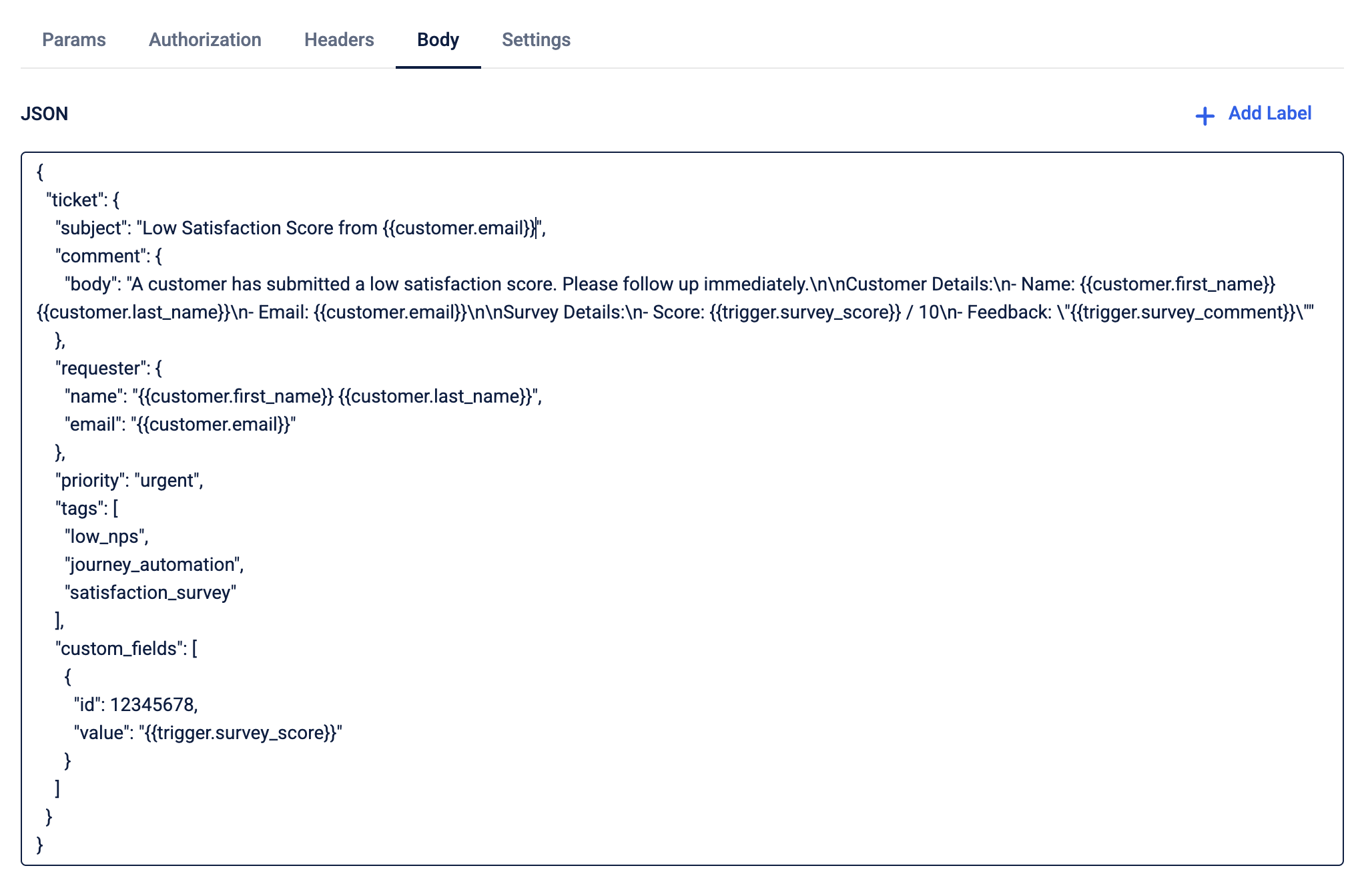 For example, when creating a support ticket, the payload can include the customer’s email address, ticket subject, and comments, all structured within a JSON body. The external system then processes this information to create the support ticket.