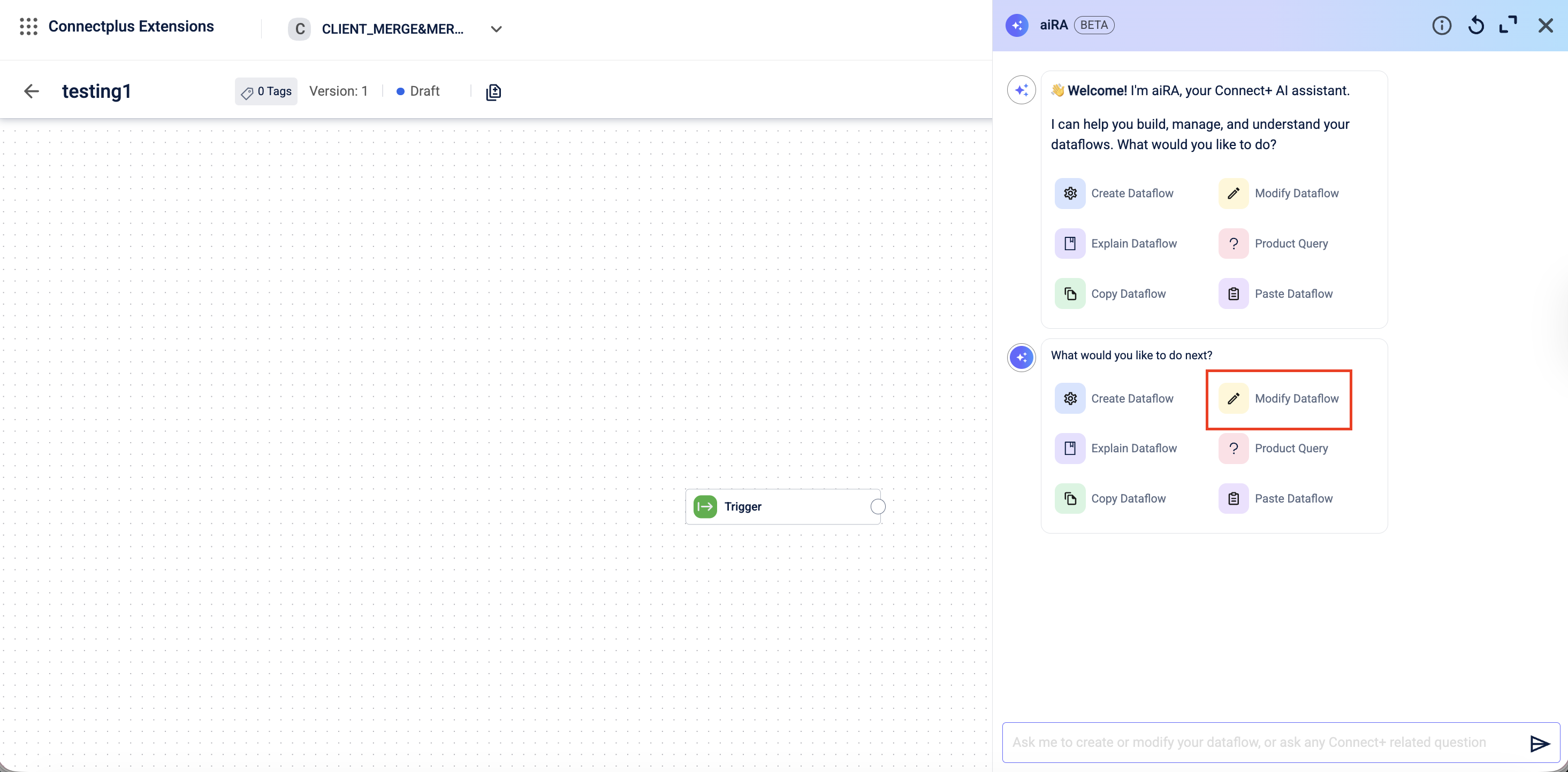 Click Modify Dataflow or enter a prompt describing the modification.