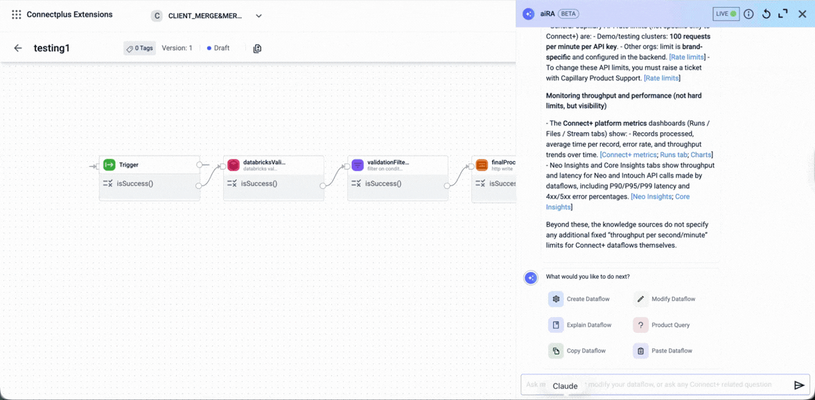 - aiRA Coder generates a starting configuration. Review all outputs before making a dataflow live.