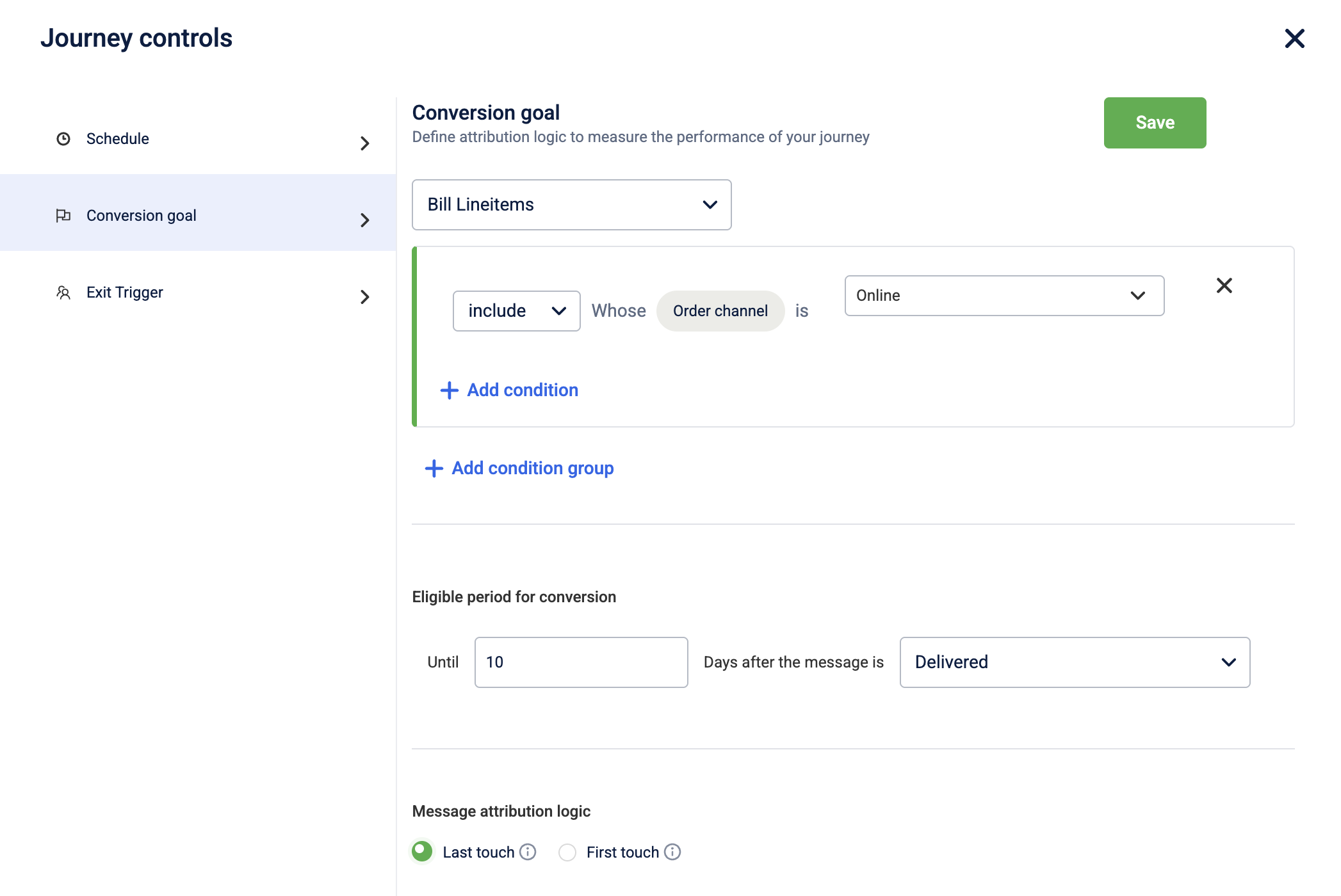 The journey conversion goal lets you define a specific goal and strategy for a journey. This helps track and measure the journey’s performance against the defined goal. Each journey supports one conversion goal.