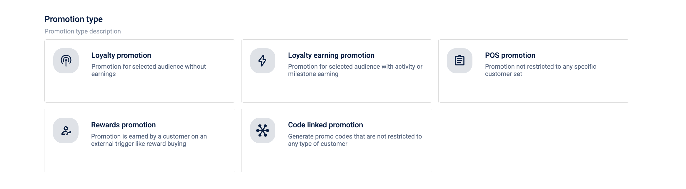 - Under Promotion type, select a specific structure based on your goal:
