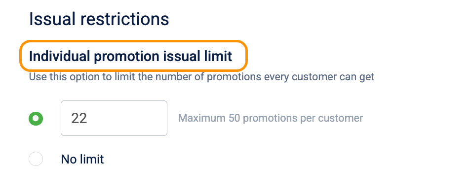 Locate the Individual promotion issual limit field.