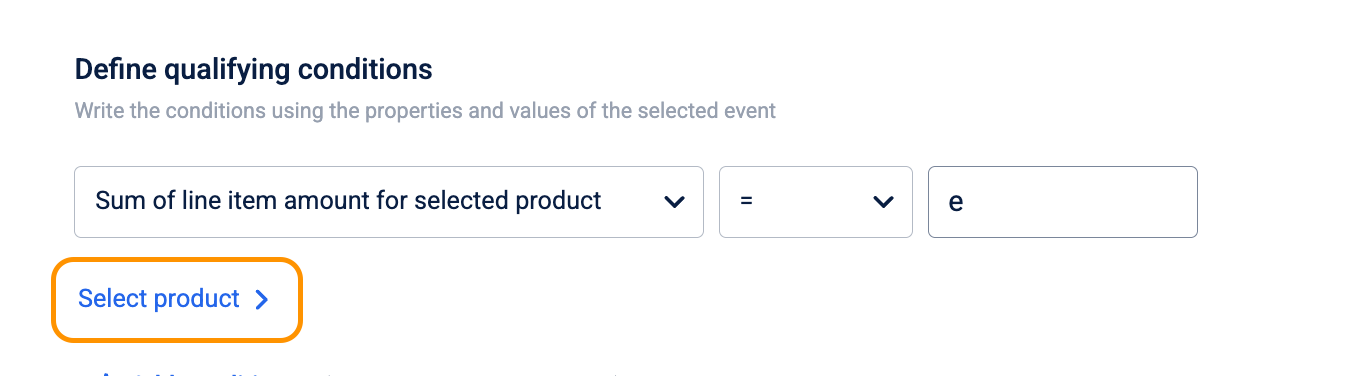 Navigate to Select product to open the Define qualifying conditions drawer.