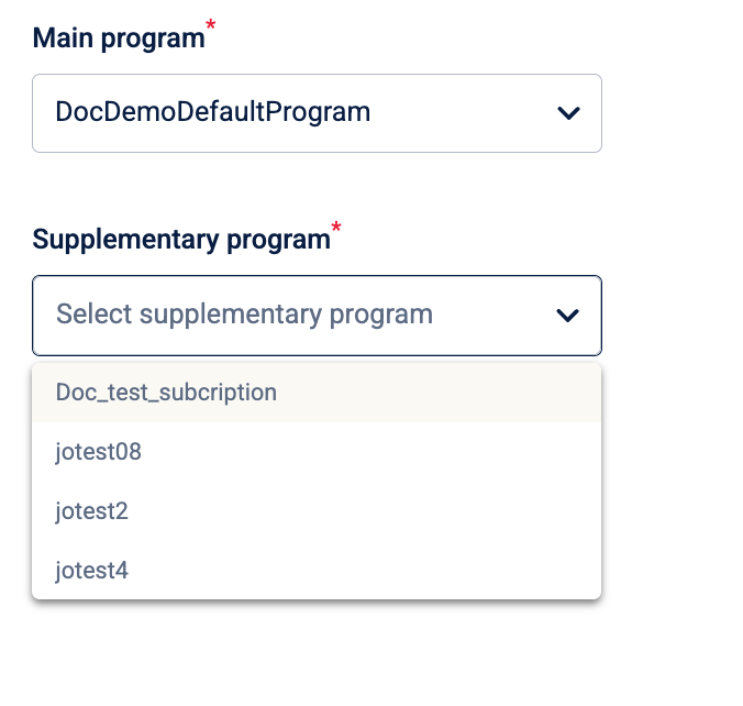 - Select Supplementary program: Once the program is selected, the Supplementary program dropdown becomes active.
