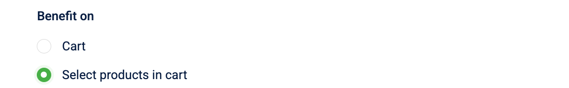 - Select products in cart: Applies the discount only to specific items within the cart.