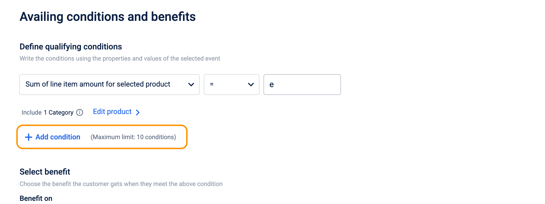 You have successfully defined the conditions; now proceed to Step 4 to configure the benefits.