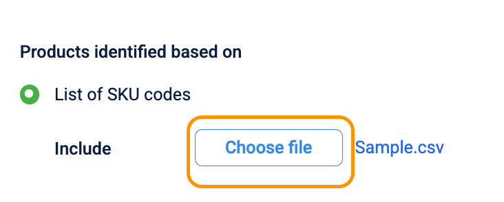 List of SKU codes: Select this to target specific items via a file upload.