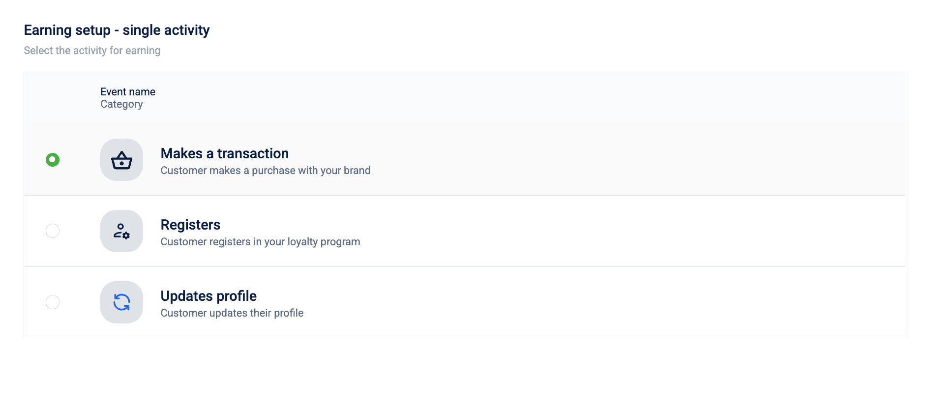 A Single activity-based promotion allows you to reward customers for a one-time specific action, such as joining your program or completing a purchase.