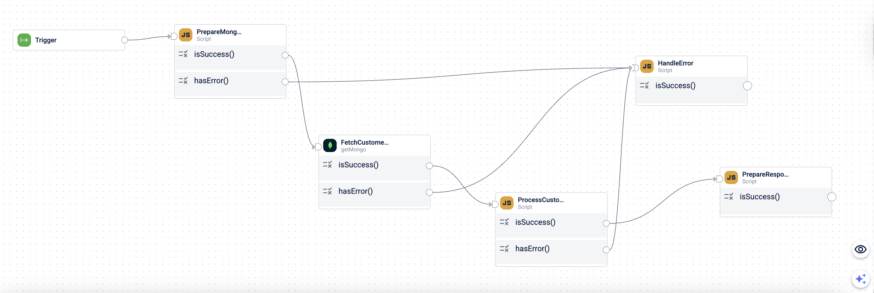 The screenshot below shows the dataflow created for the prompt above. Here, in the getMongo block the AIRA coder has generated the query in the EJSON format.