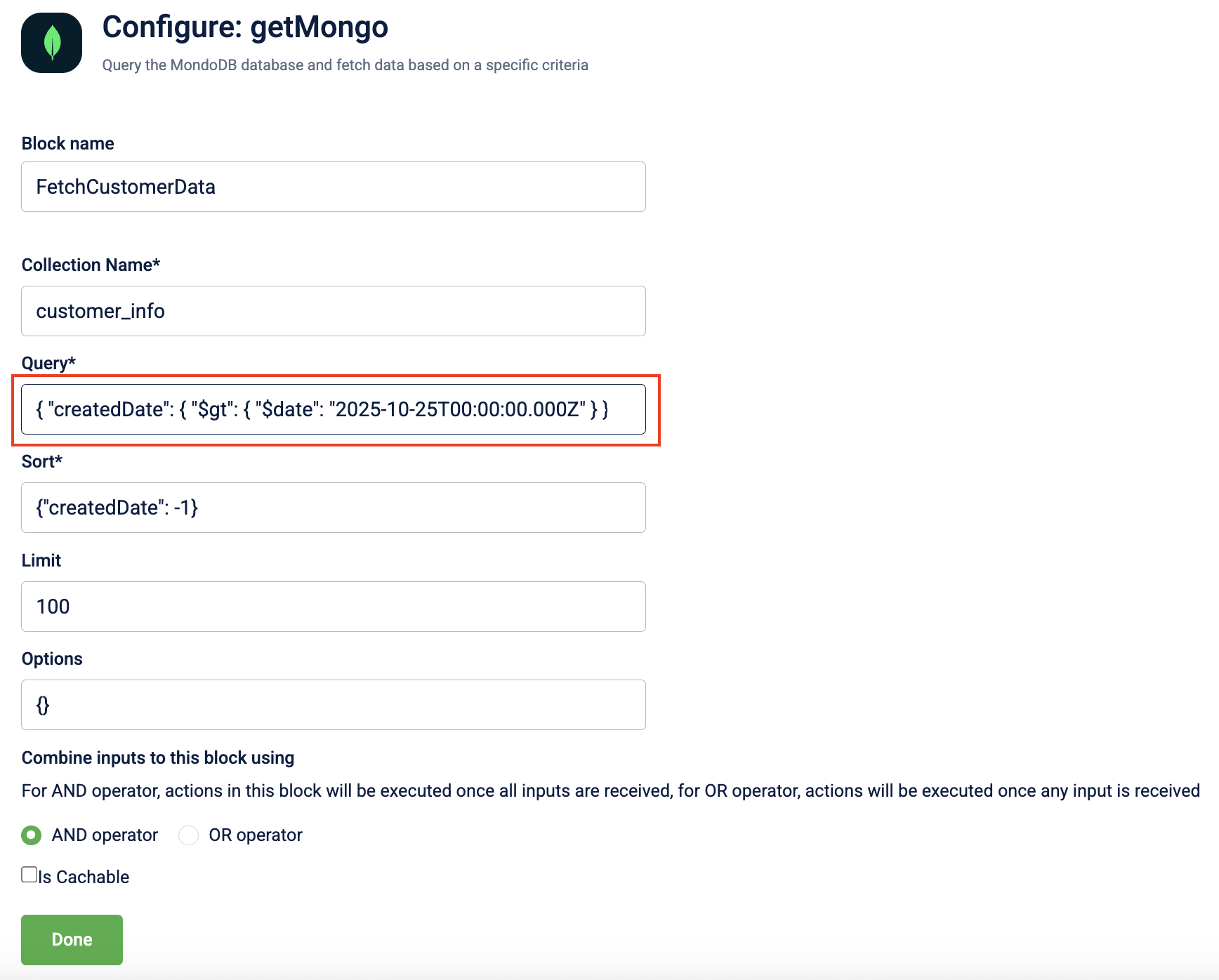 Create a dataflow that can search customer details from mongo collection 'customer_info' from date greater than '2025-10-25'