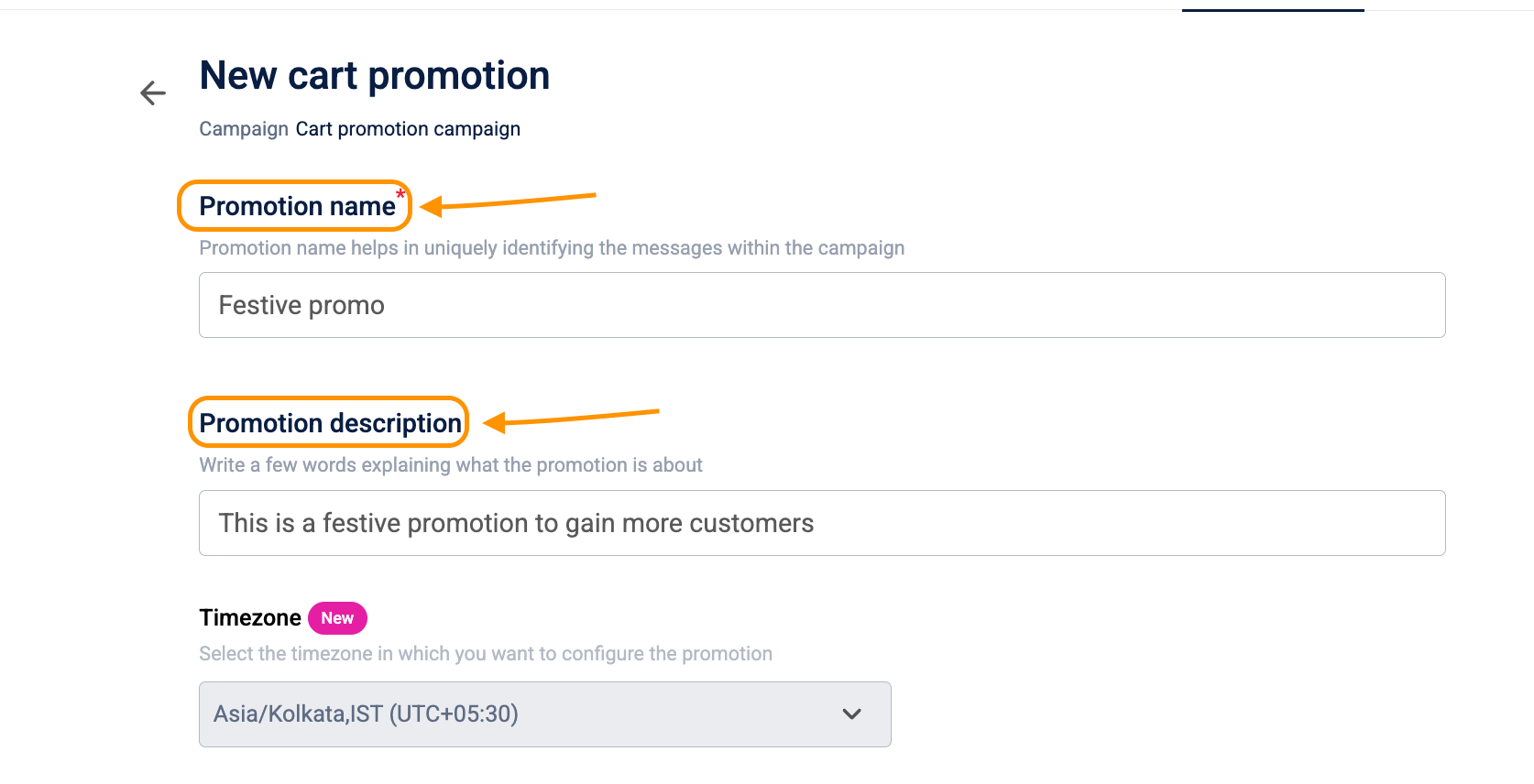 - Promotion Description: Provide a summary to help differentiate this promotion from others in the dashboard.