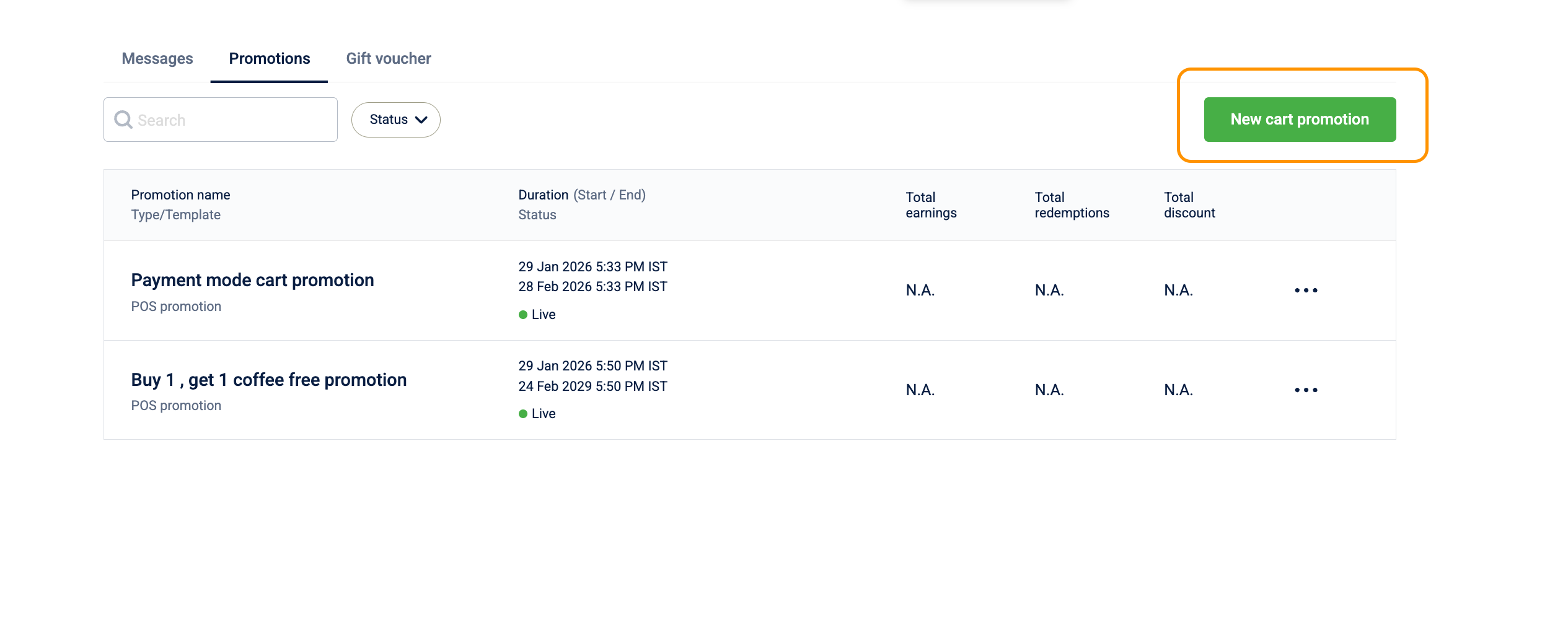 - Click on New cart promotion.
