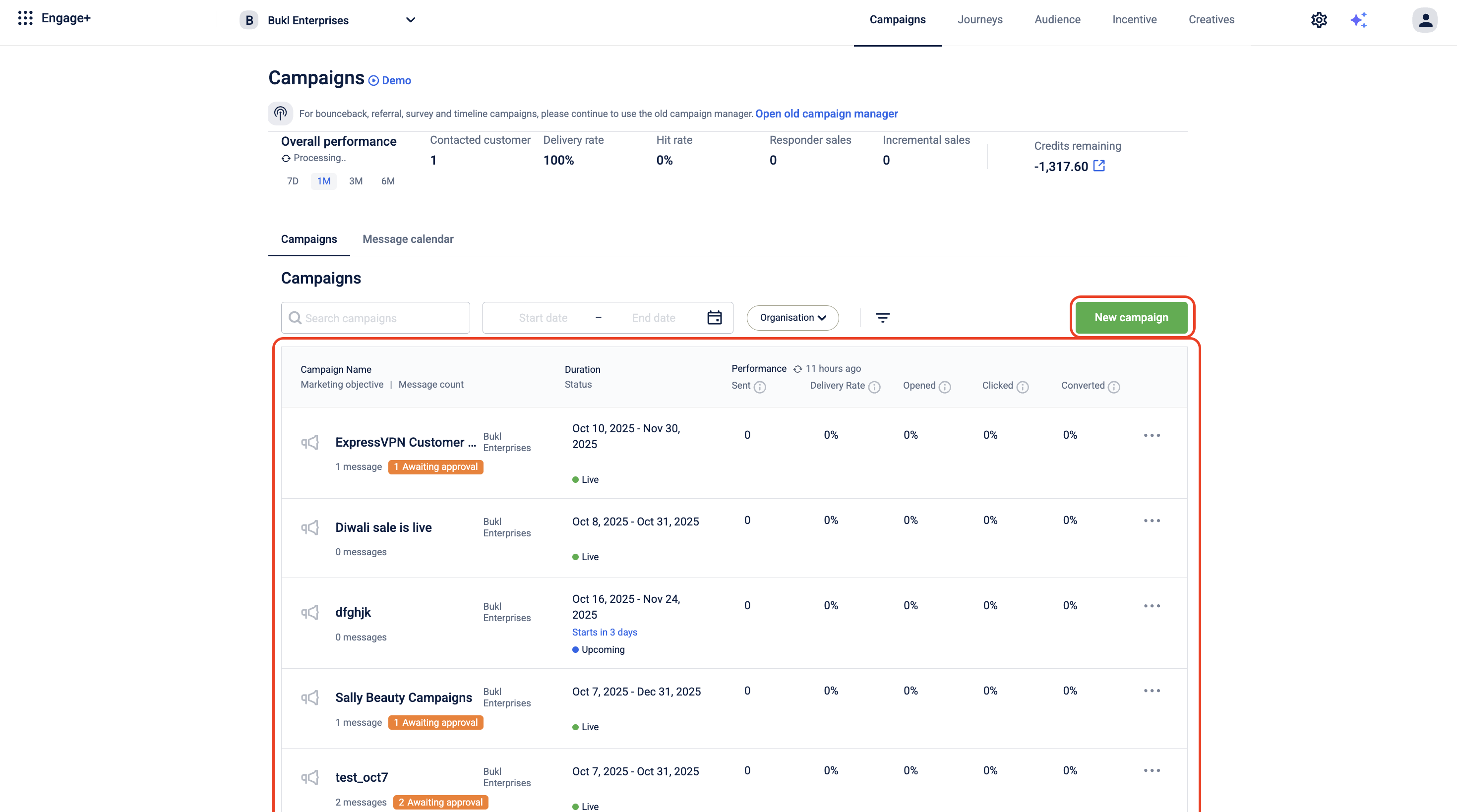 Custom tags are dynamic placeholders used to personalize message content with data uploaded in the audience list. These are available by default, and you can map them to the desired dynamic values. The custom tags are named in the format custom_tag_1, custom_tag_2, and so on. A total of 15 custom tags are available, which you can use to define your dynamic values.