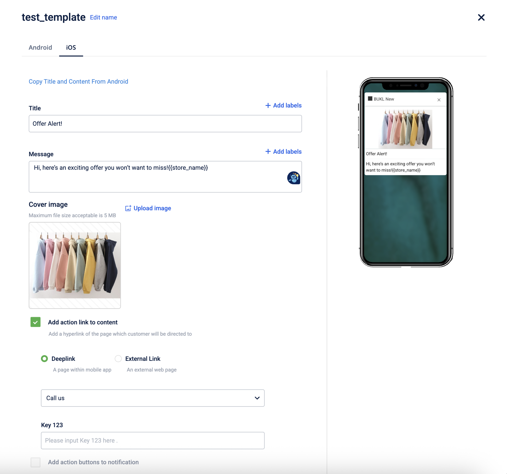 - Configure Platform Specific Content – Customize the notification separately for Android and iOS to ensure the best user experience.
