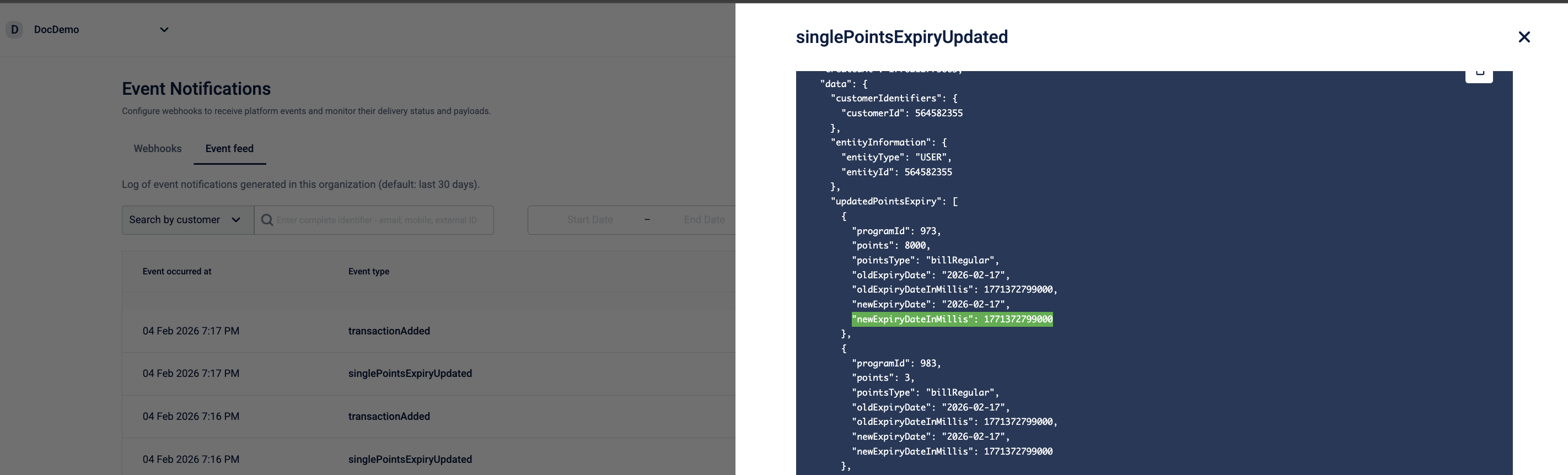 In event notifications, date and time values are standardised using epoch milliseconds.