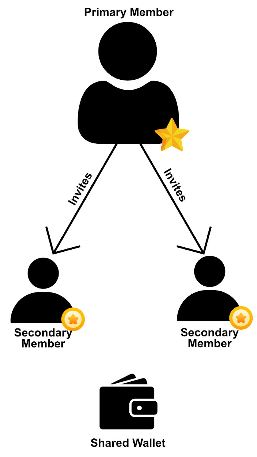 If you want members to also maintain personal wallets alongside the group wallet, use the dual wallet model instead.