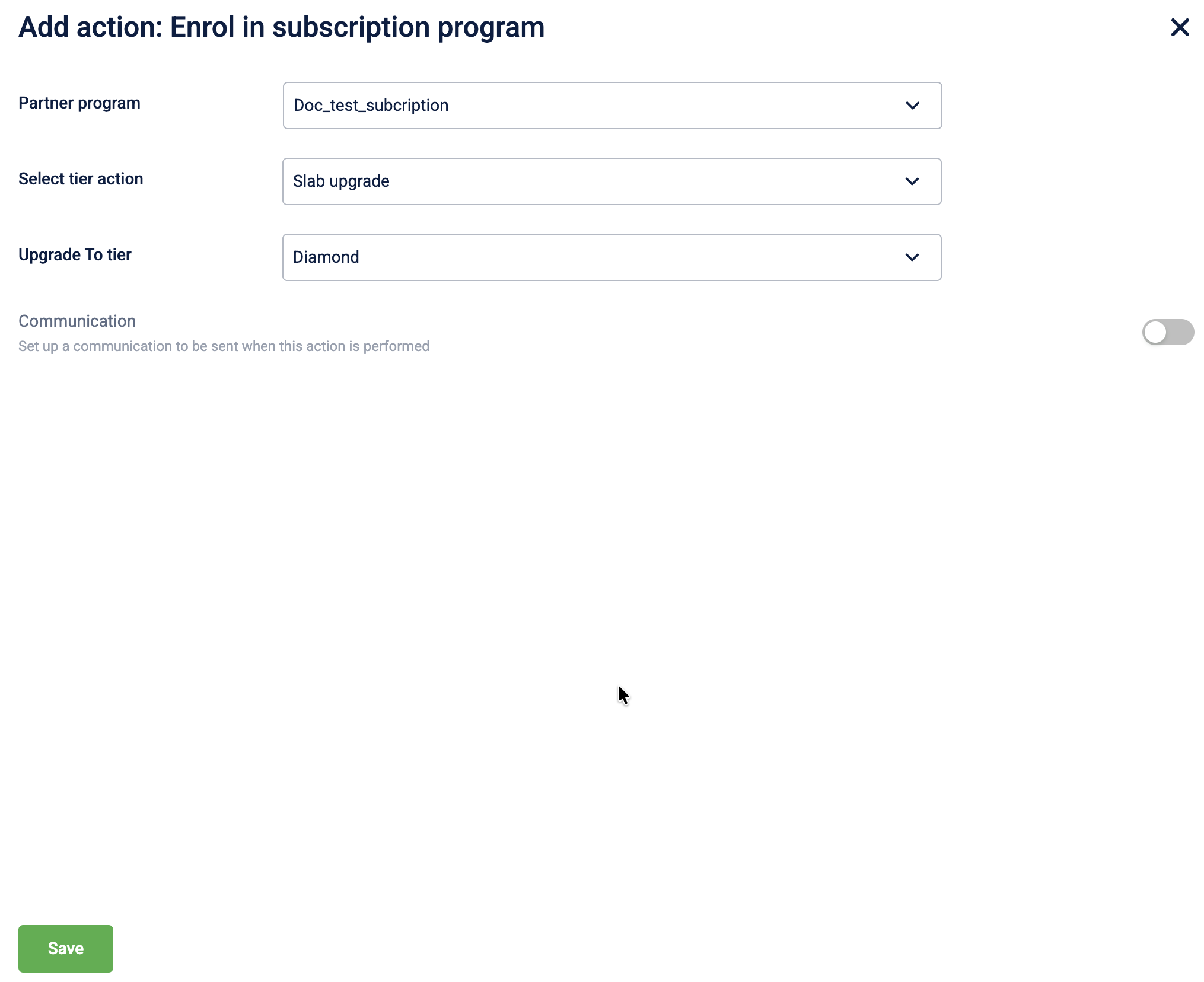 | Slab upgrade | Member’s tier within the subscription program will be upgraded to the selected tier. |