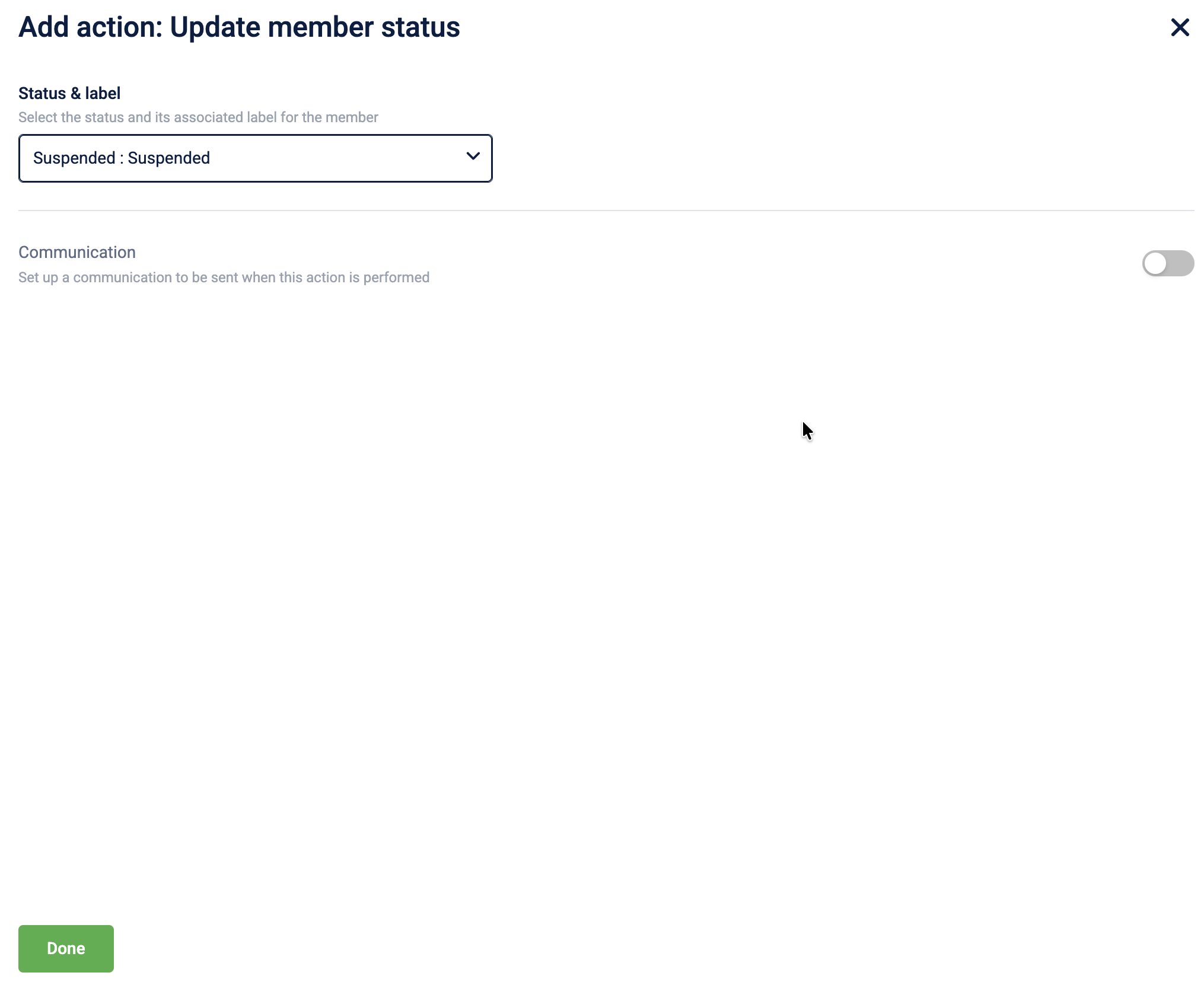 In the Status & label dropdown, select the new status and label to apply to the member.