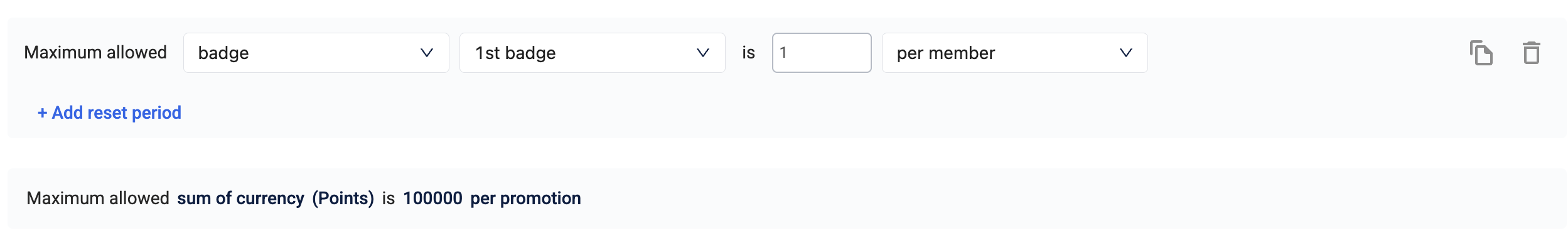 Participation limits govern the promotion's lifecycle by defining who is eligible to join, how many times they can enrol, and the total number of participants allowed. In contrast, reward limits control the benefits themselves, limiting the total points a member can earn or the number of times a qualifying activity can be rewarded. Together, these limits are crucial for managing the promotion's budget, preventing reward abuse, and strategically creating a sense of exclusivity or urgency. Refer to the document on Loyalty Promotion Limits for more details.