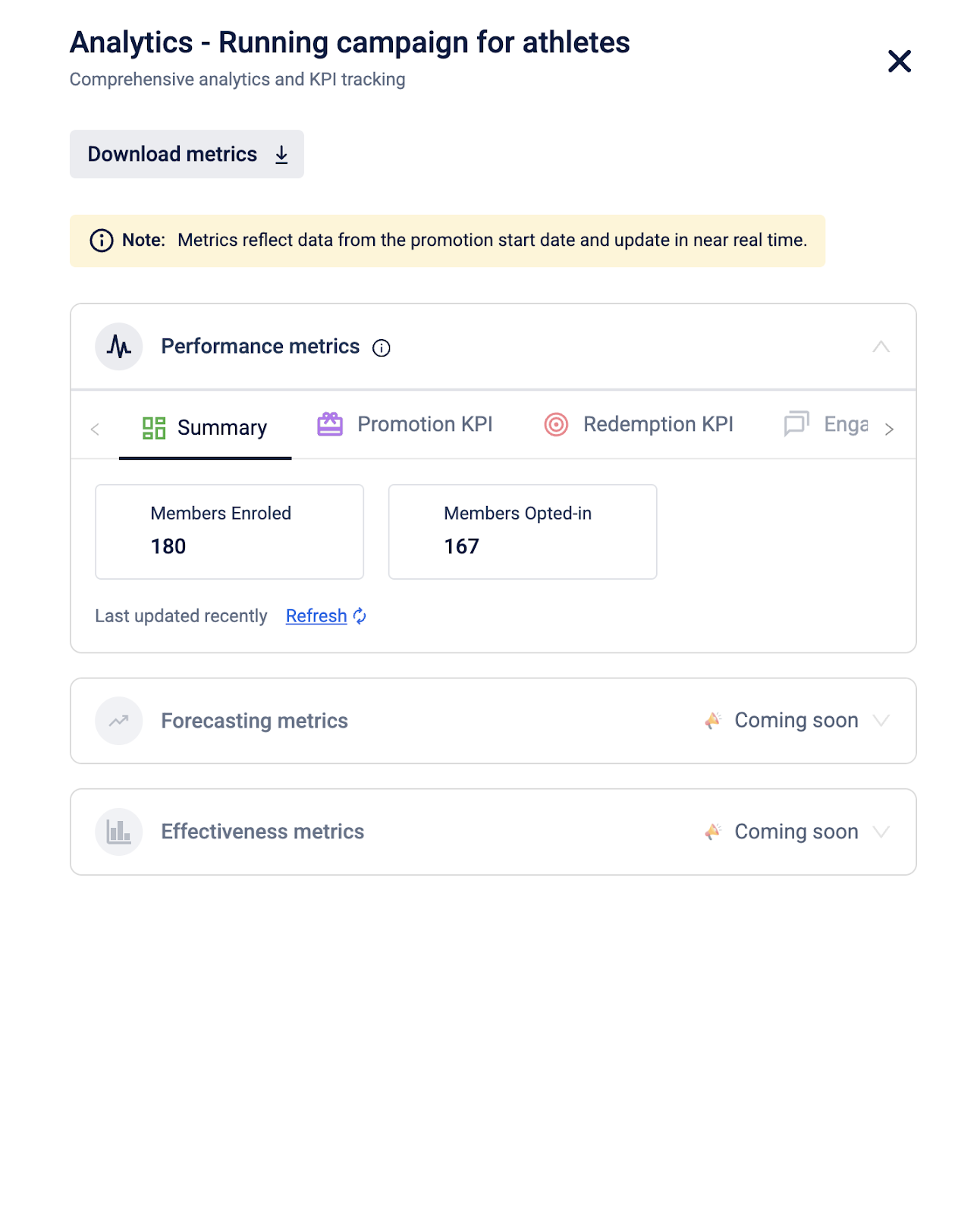 | Summary | Members enrolled | The total number of members who have successfully met the enrolment criteria and are eligible to participate in the promotion. |