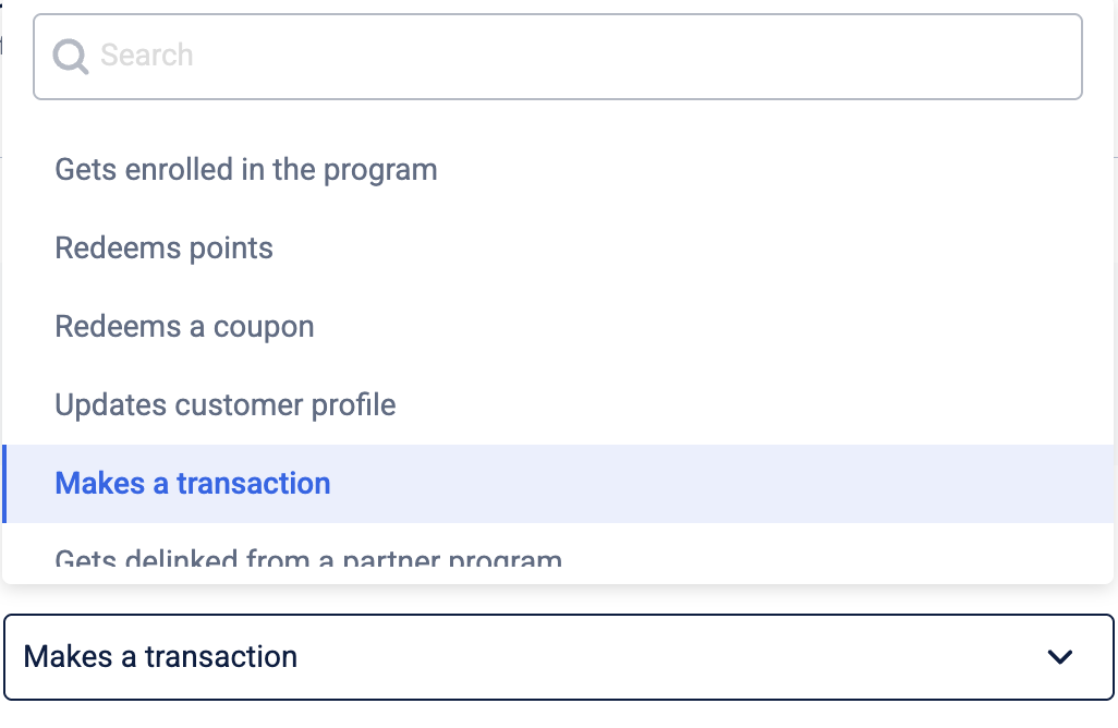 The member action is a specific event or behavior that is the trigger for a promotion's earning criteria. This selection is a key part of the rule, defining the primary member interaction to monitor. It determines the nature of the promotion, whether it rewards a transactional behavior like making a purchase, an engagement activity like updating a profile, a loyalty interaction such as redeeming points, or any other custom behavioral event. Refer to the document on Member Actions for more details.