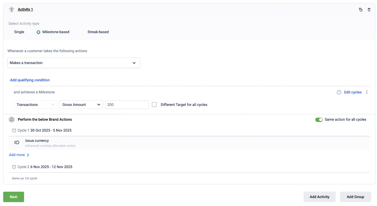 You have configured a milestone activity, and customers will now be rewarded upon reaching the cumulative target you have set.