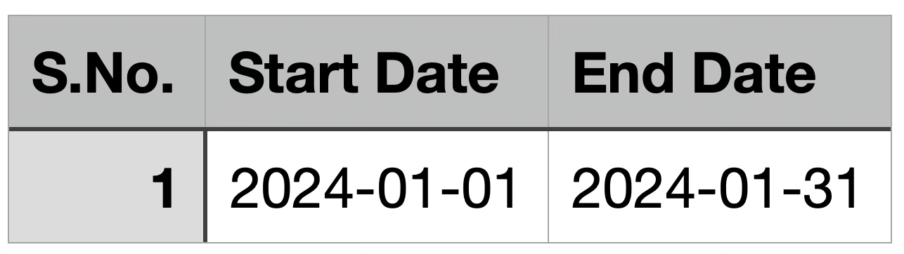 NoteIf you do not provide a time along with the date, the times will default to 00:00 and 23:59 (start of the day to end of the day).