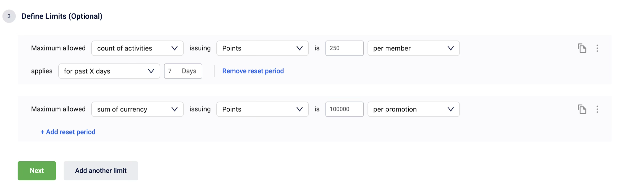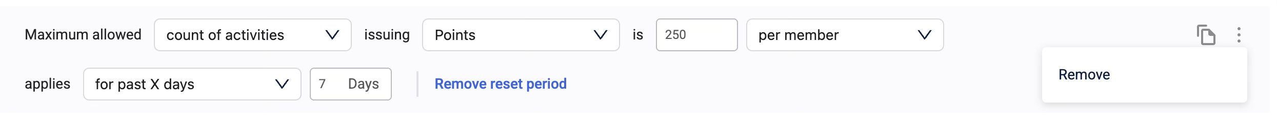 - Limit the number of times a qualifying activity can be performed for a reward.
