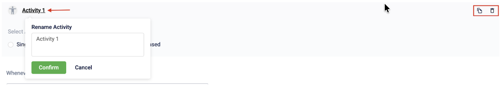 Use the icons in the top right corner of any sub-activity or sub-group box to manage it.