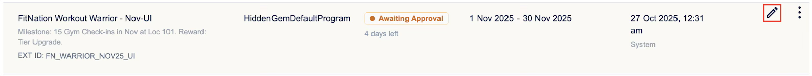 Select the pen icon to edit a loyalty promotion.