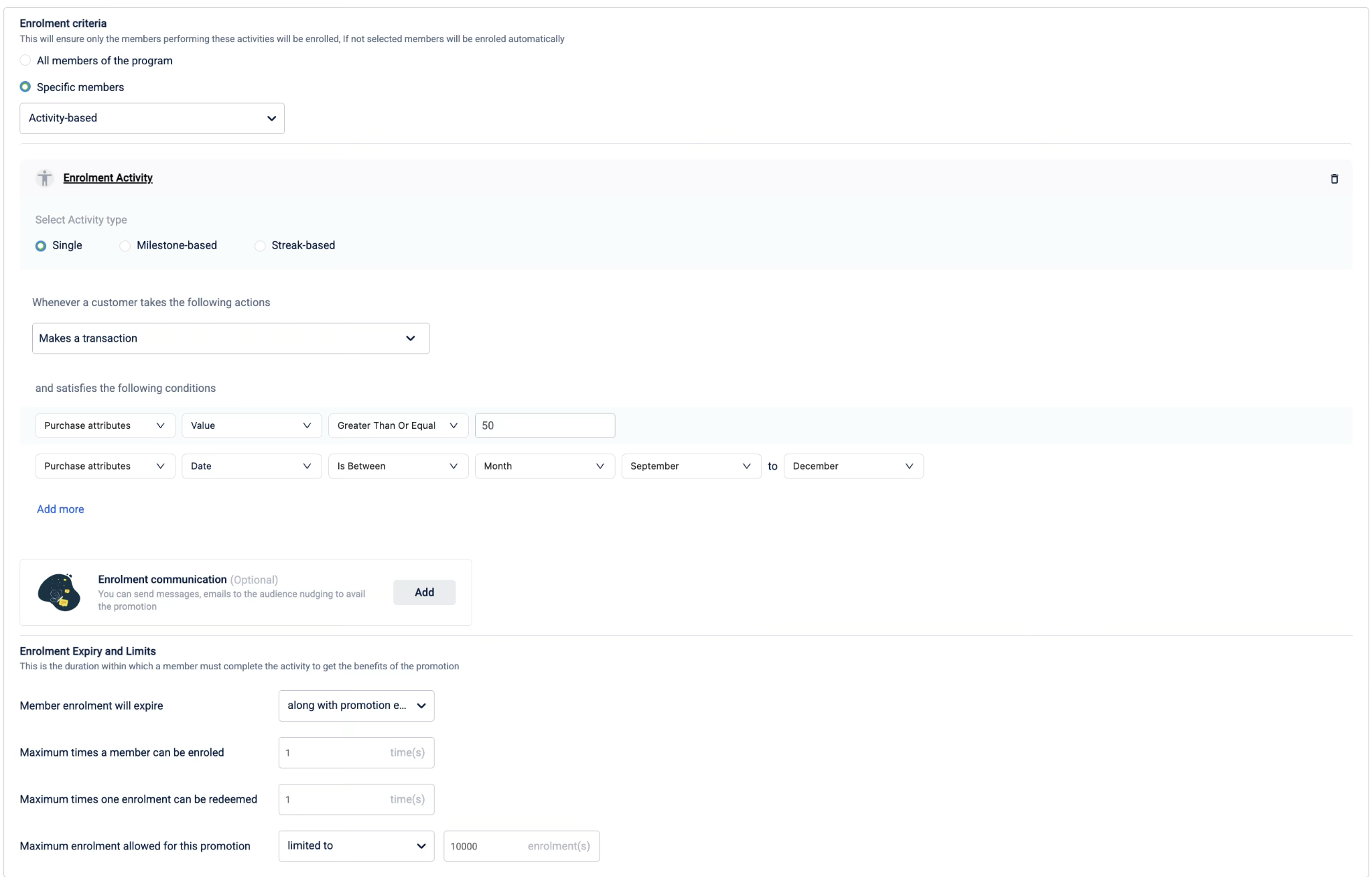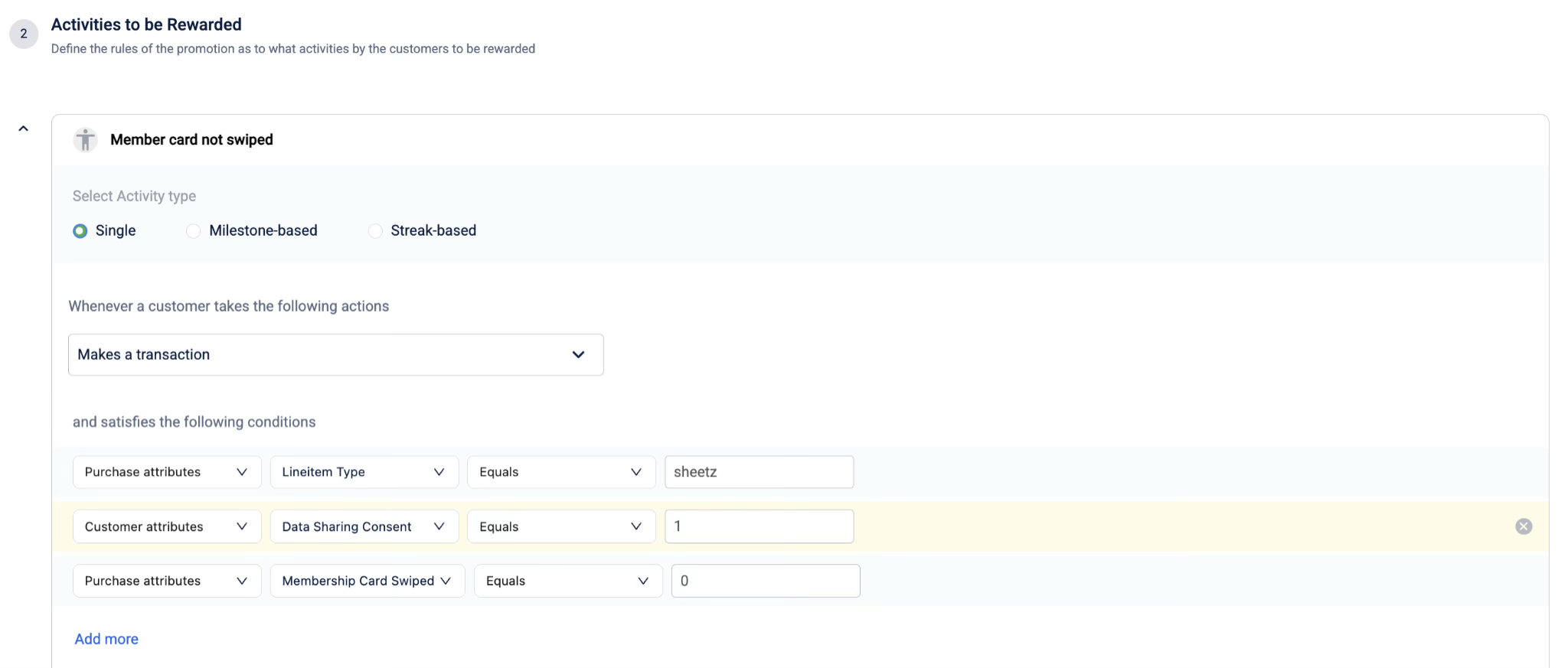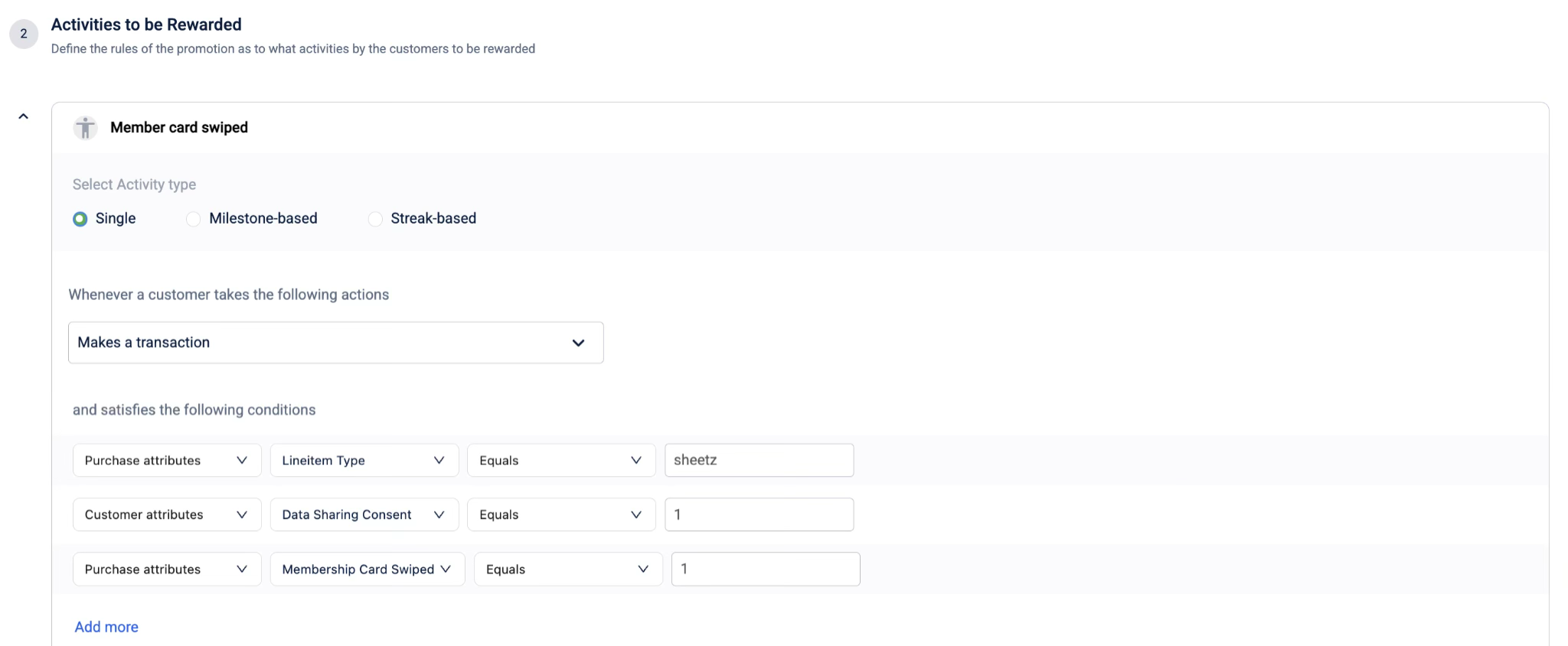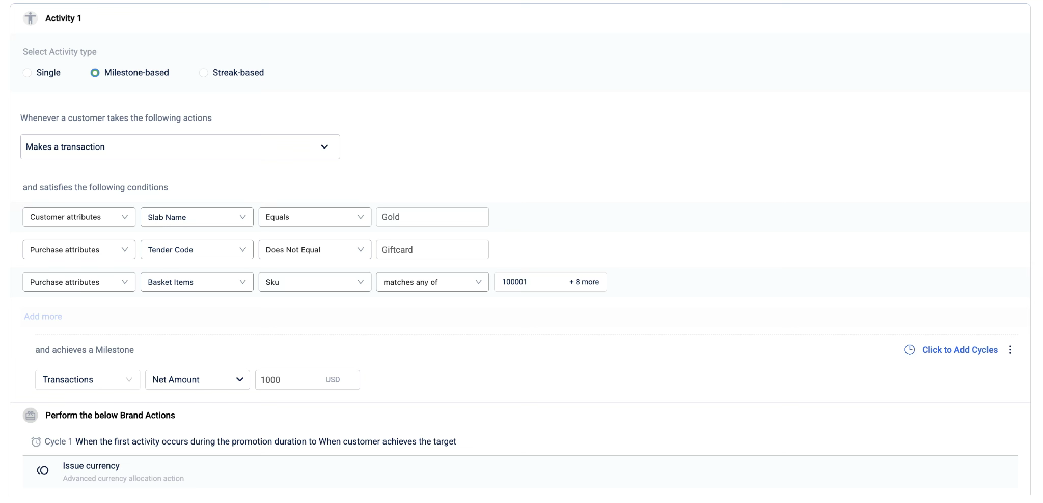 Select Add Activity to begin configuring a new activity. Configure the coupons to issue for the
