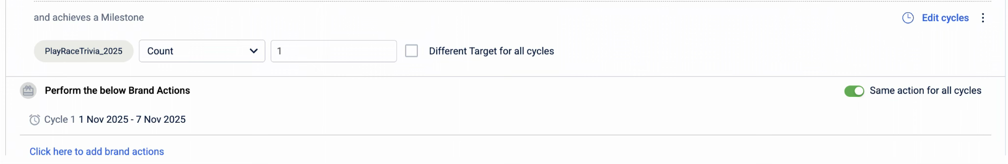 PlayRaceQuiz_2025. When the customer completes the quiz, this behavioral event is triggered, and the customer earns the reward points. - Enable the extended field