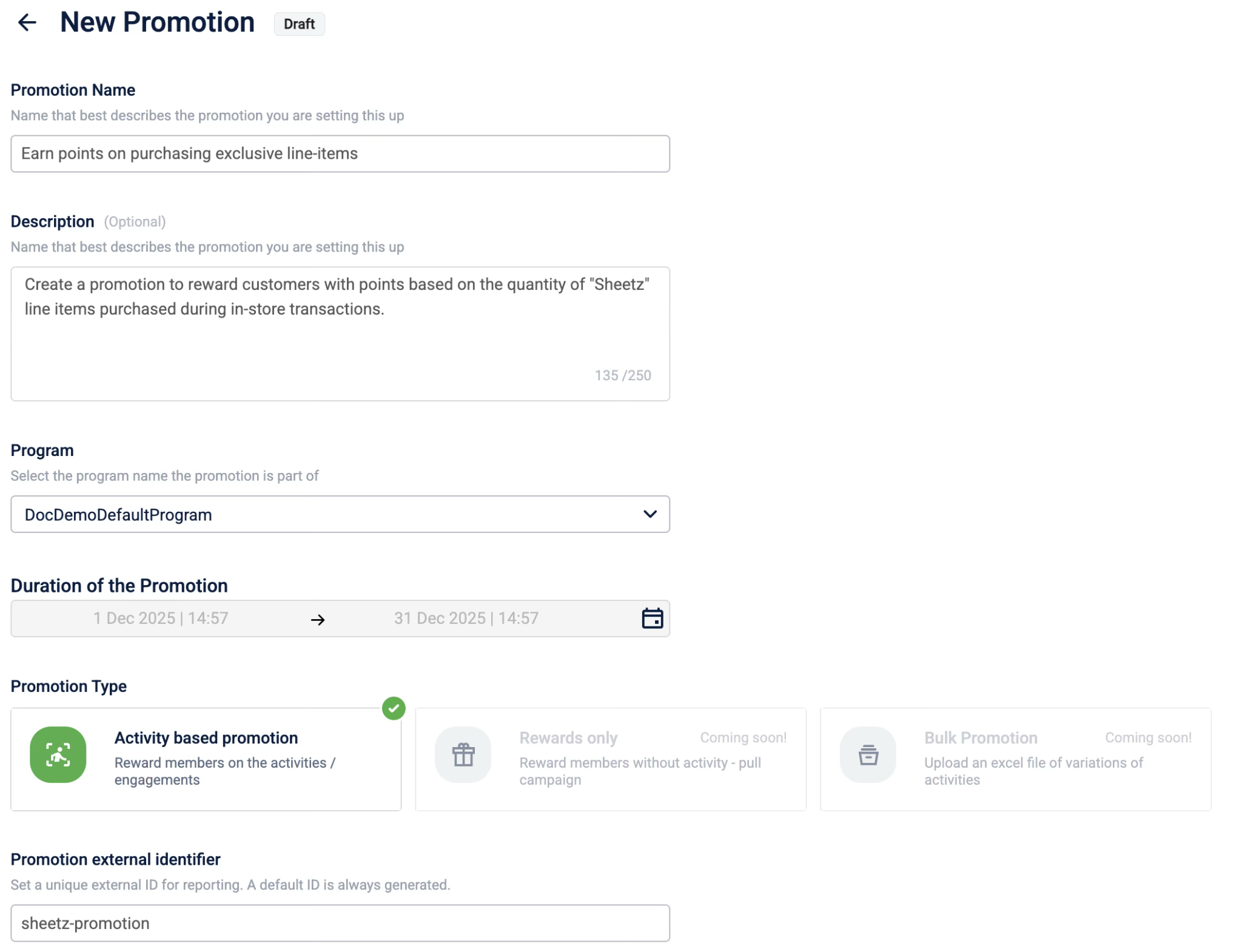 Description: Create a promotion to reward customers with points (10% of transaction value) based on the total value of "Sheetz" line items purchased during in-store transactions.