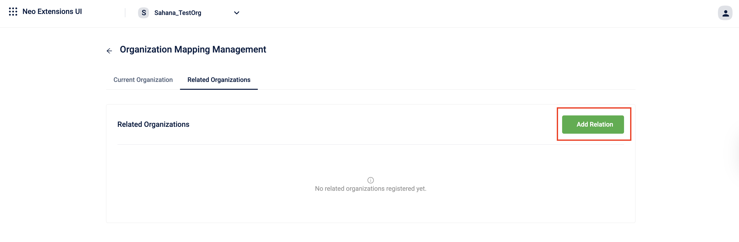 Navigate to the Related Organizations tab on the Organization Mapping Management page.