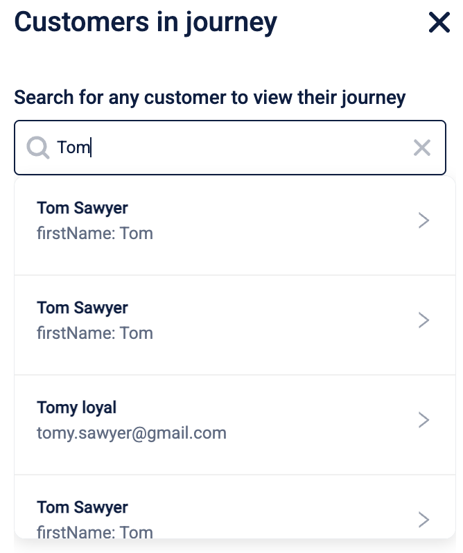 - Correct Journey: This search only shows results for customers within the specific journey you are viewing.
