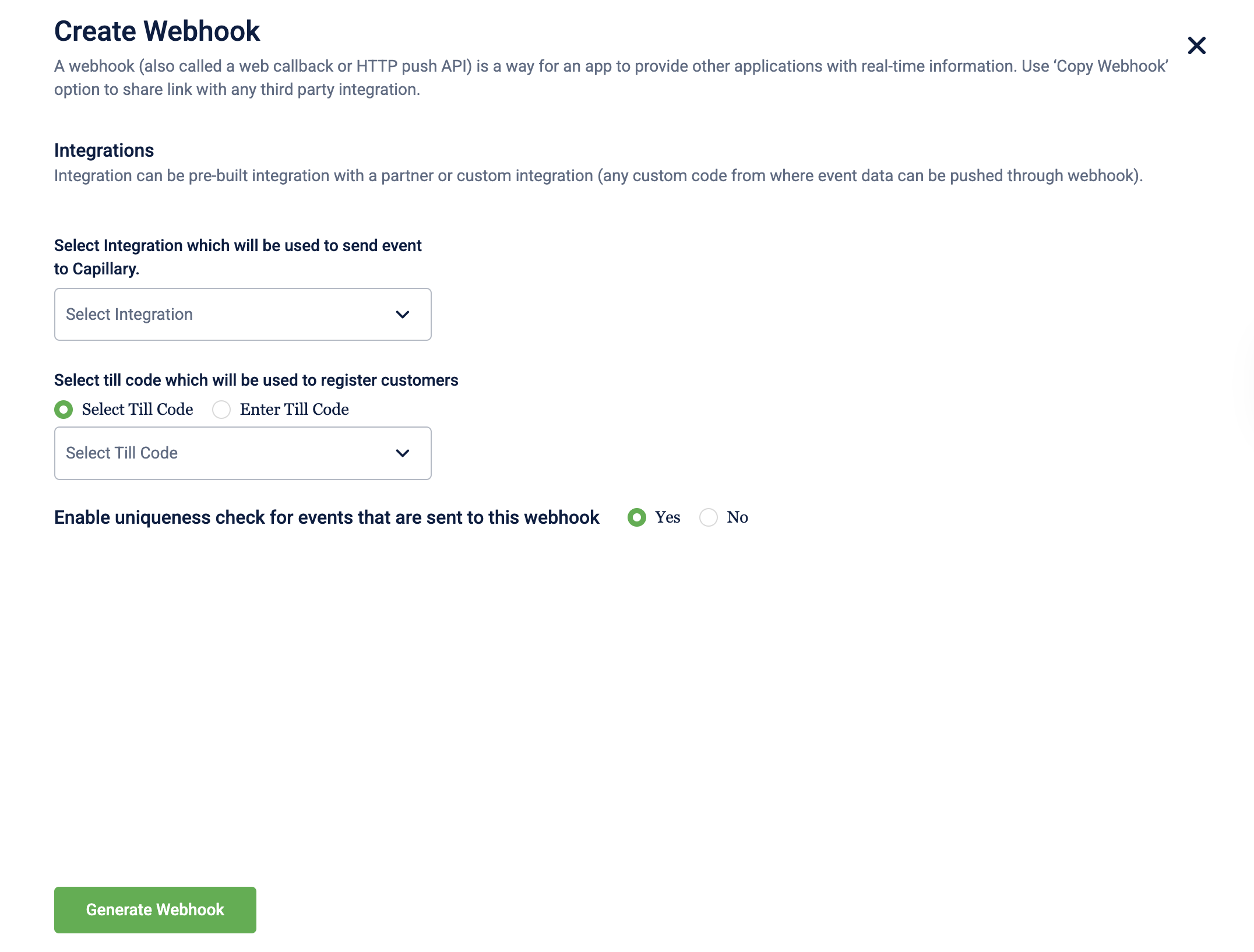 - Custom integration to integrate Capillary Behavioural Events platform to any other third-party apps.