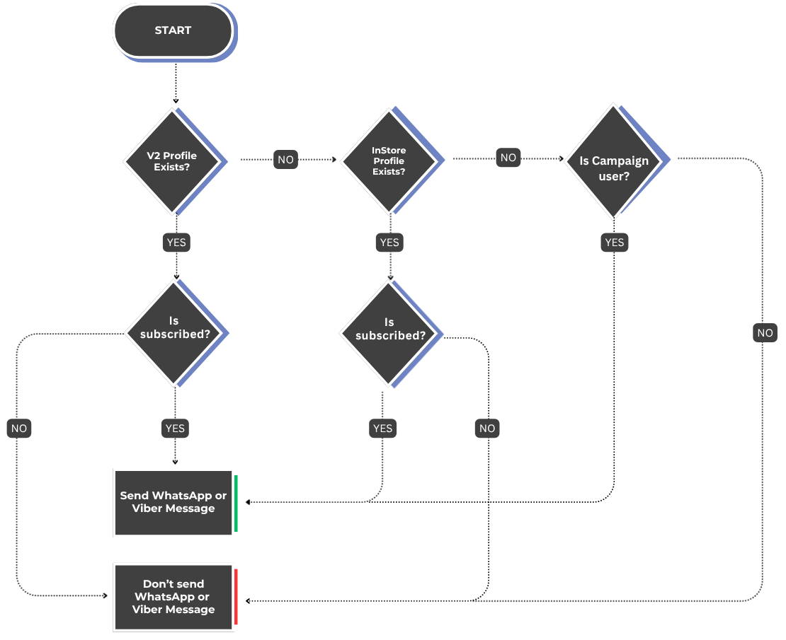 Primary WhatsApp or Viber Number (V2 Profile): First, the system checks for a registered WhatsApp or Viber number in the customer's primary V2 profile.