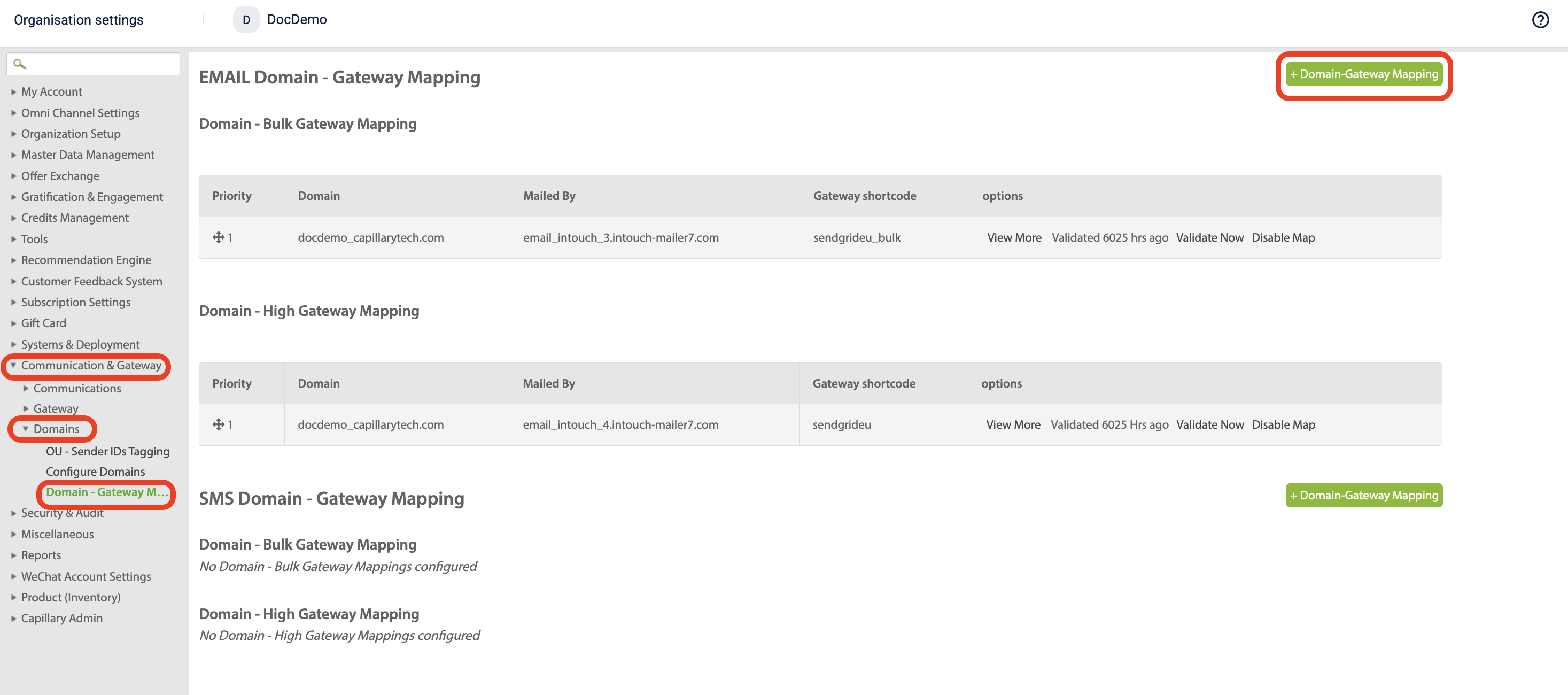 Select Communication & Gateway >Domains > Domain Gateway Mapping.