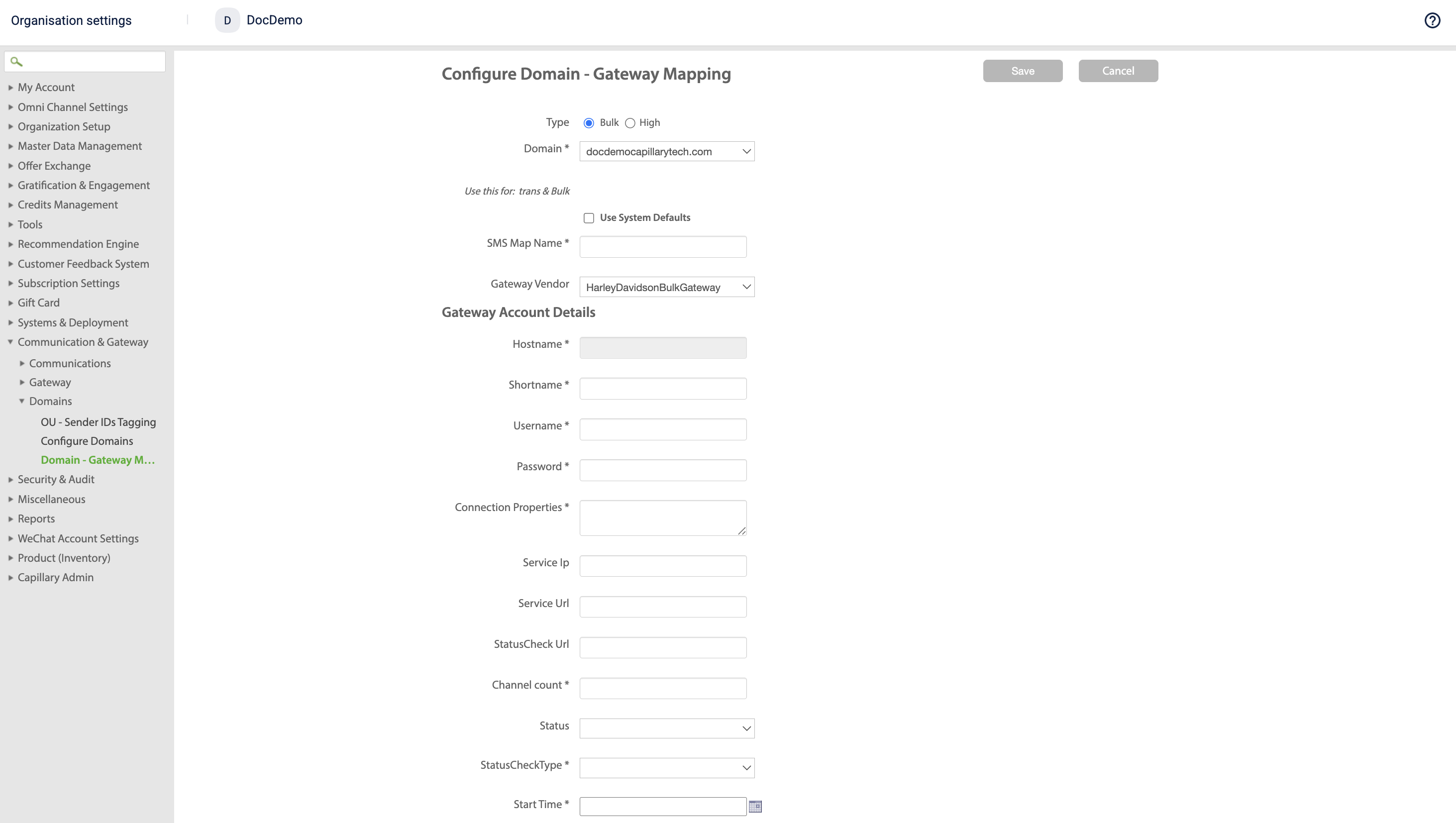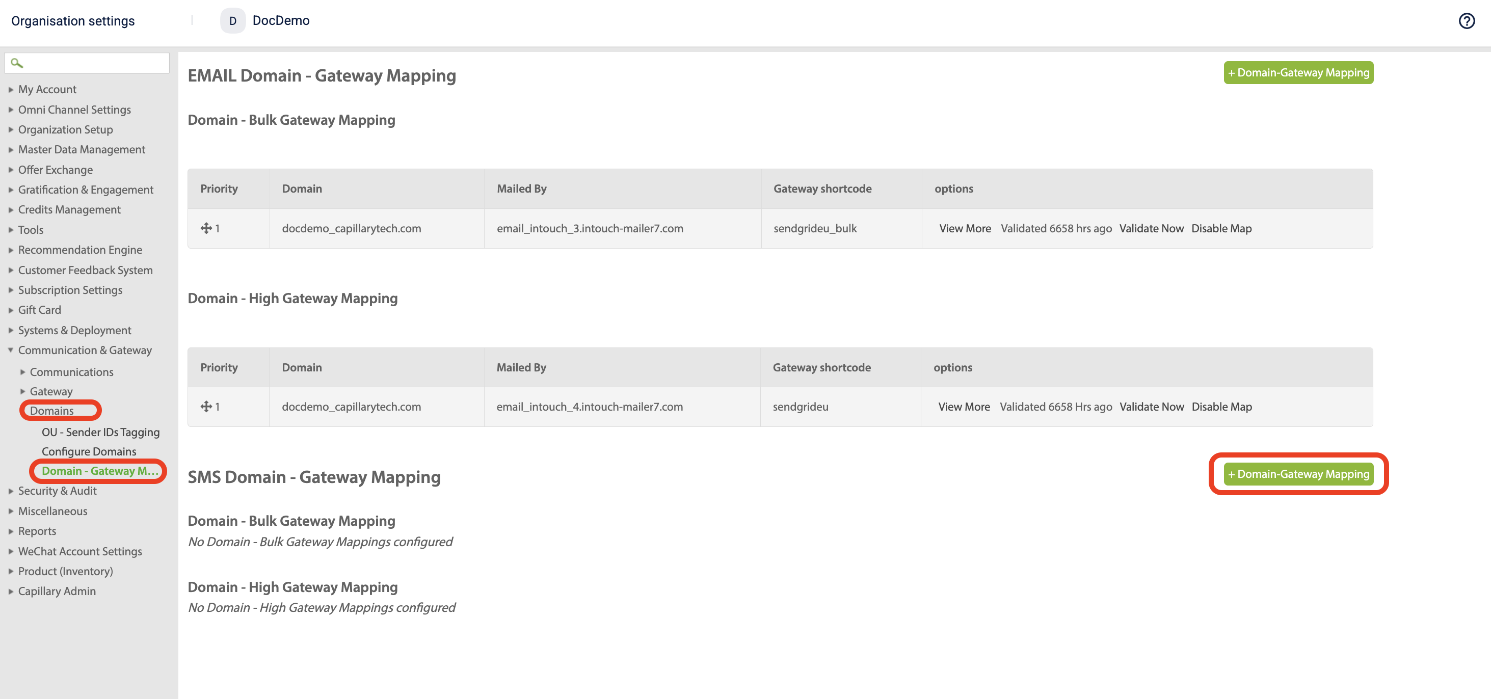 Select Communication & Gateway > Domains > Domain Gateway Mapping.