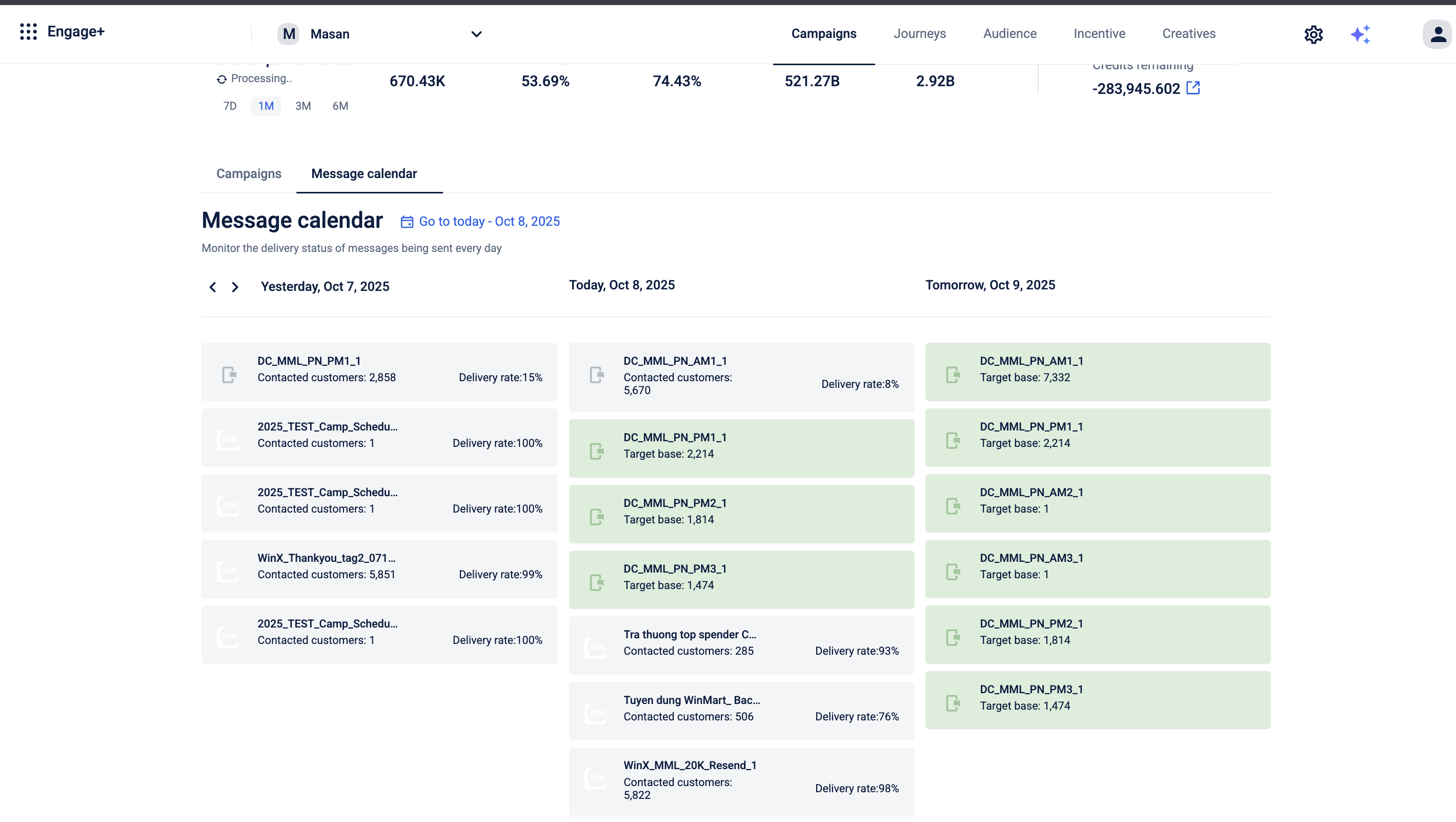 For example, if you want to check how many campaigns were run on a particular day and view their approval and delivery progress, you can use the Message Calendar to see the status of each campaign scheduled for that date.