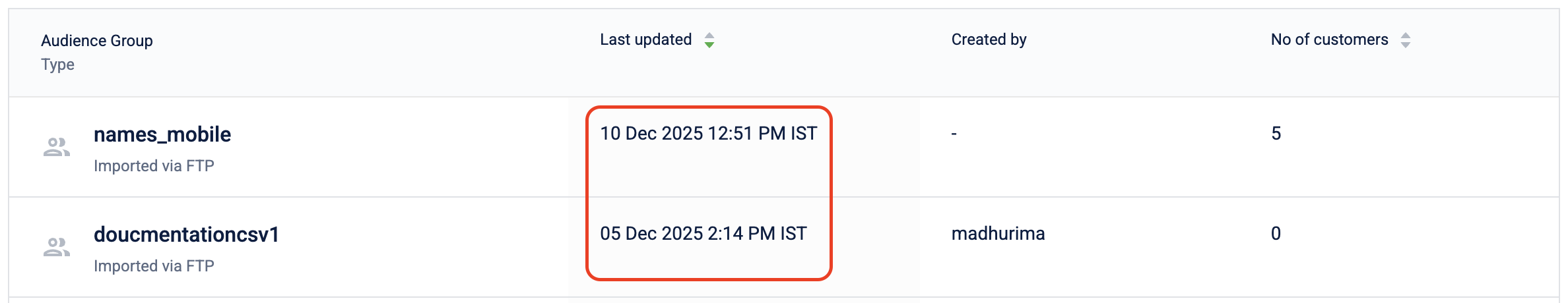 The audience listing page displays all date and time values in the organization timezone.