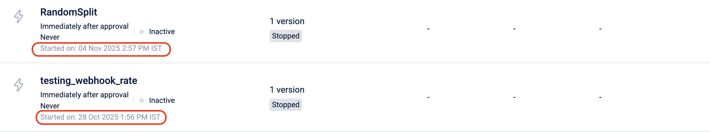 During creation and on the listing page, all date and time values follow the organization timezone.