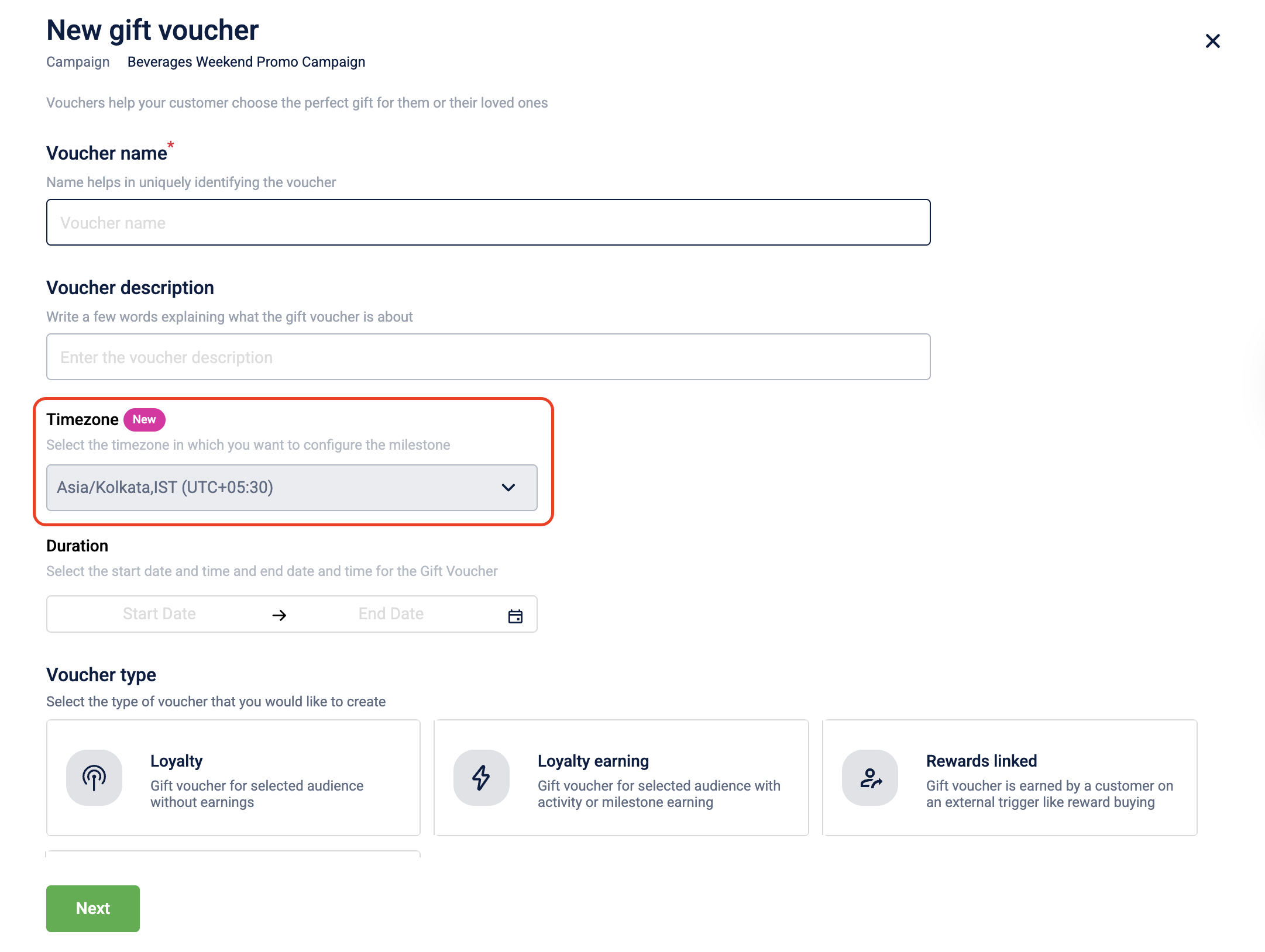 The available timezones in the dropdown are populated from the supported timezones configured in your organization settings. In the new Promotions UI, this behaviour is enabled by default.