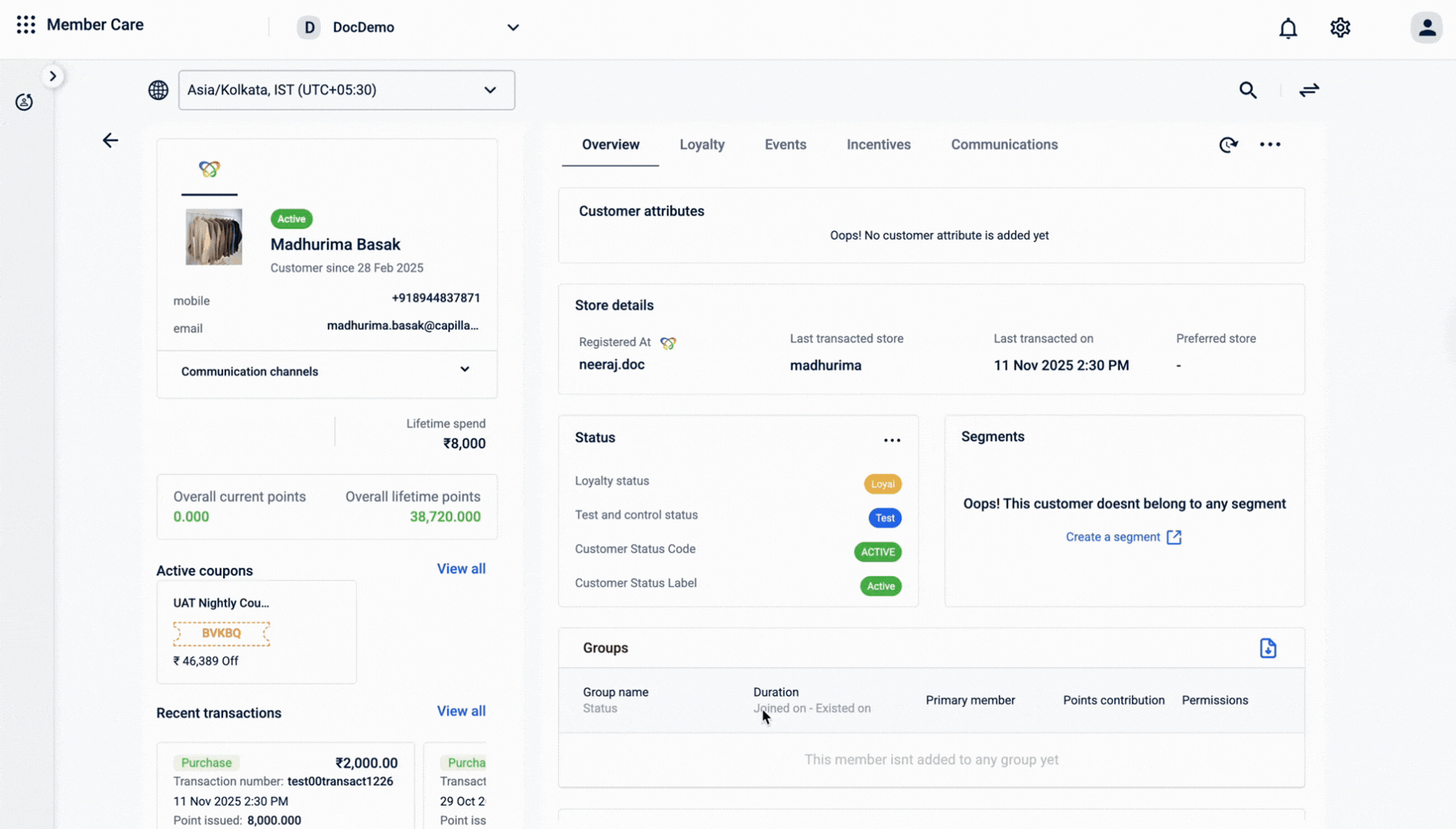 If you want to view date and time information in a different timezone, select the required timezone from the timezone dropdown. The available timezones are populated from the supported timezones configured in your organization settings.